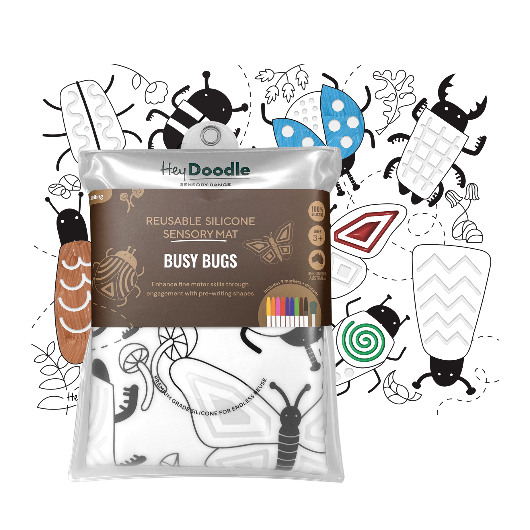 Busy Bugs is an interactive coloring mat designed to help children practice writing numbers while counting and bringing fairies and unicorns to life with colorful bursts. The coloring mat can be easily washed off for endless fun and creativity, allowing kids to enjoy the magical world of Busy Bugs over and over again.