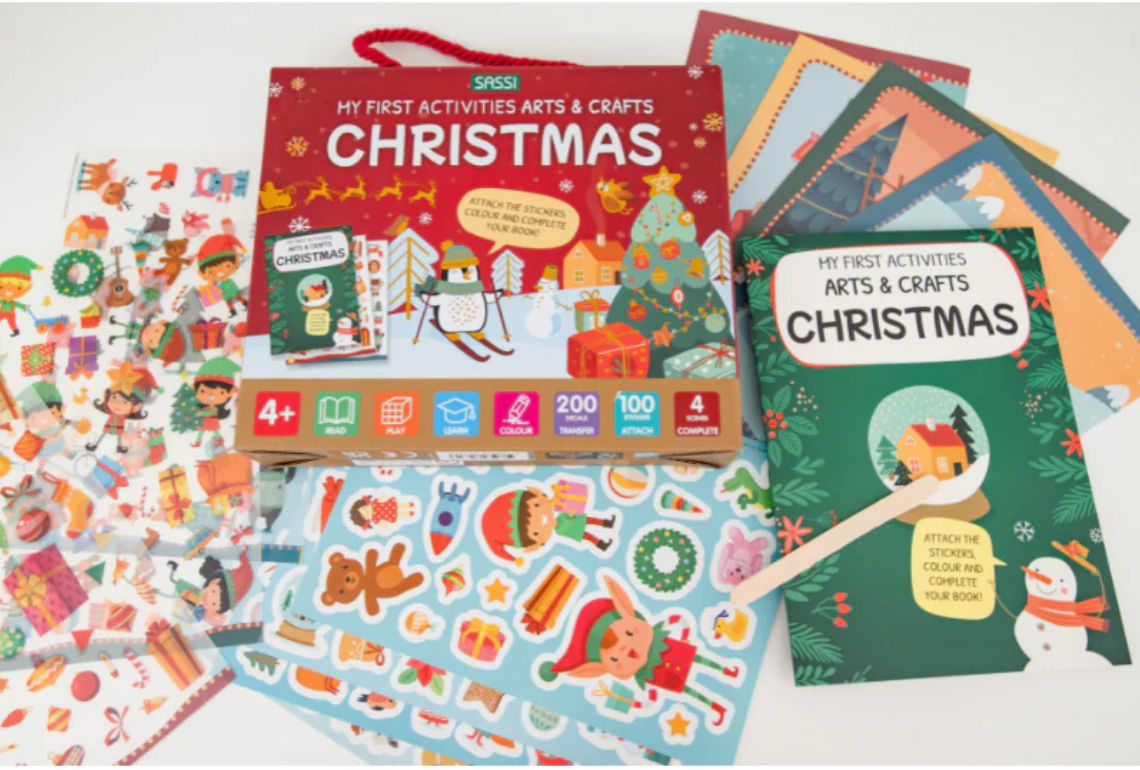 Explore the 16-page book and kit to unleash your creativity with the arts & crafts activities. With 50 stickers, 200 decals and a special tracing pen, you can bring the four scenes to life and let your imagination run wild this Christmas!
