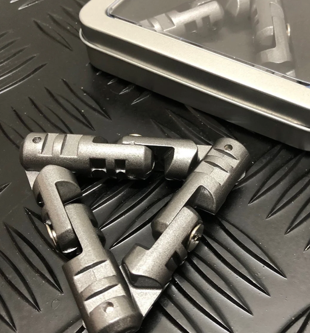 These give similar sensory input to infinity cubes. Made from metal they infinitely flip over and over in the hands as you manipulate the fidget. More of a two-handed fidget, the flip action provides some resistance also.
