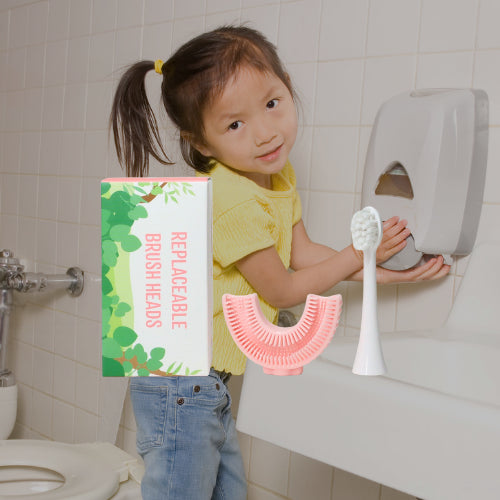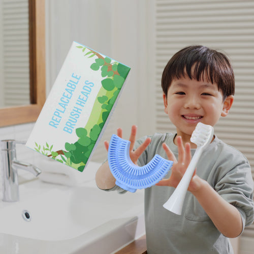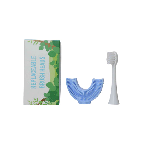 Pack of 2 different style replacement brush heads for the Little Gnashies toothbrush.