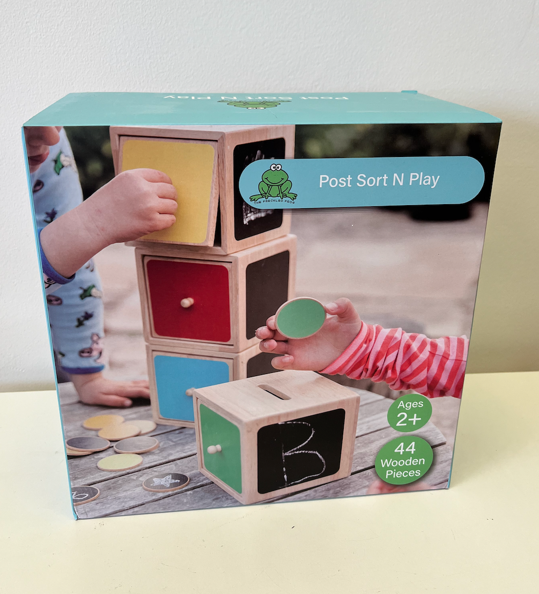 Freckled Frog wooden posting and sorting game, ages 2+, 44 wooden pieces