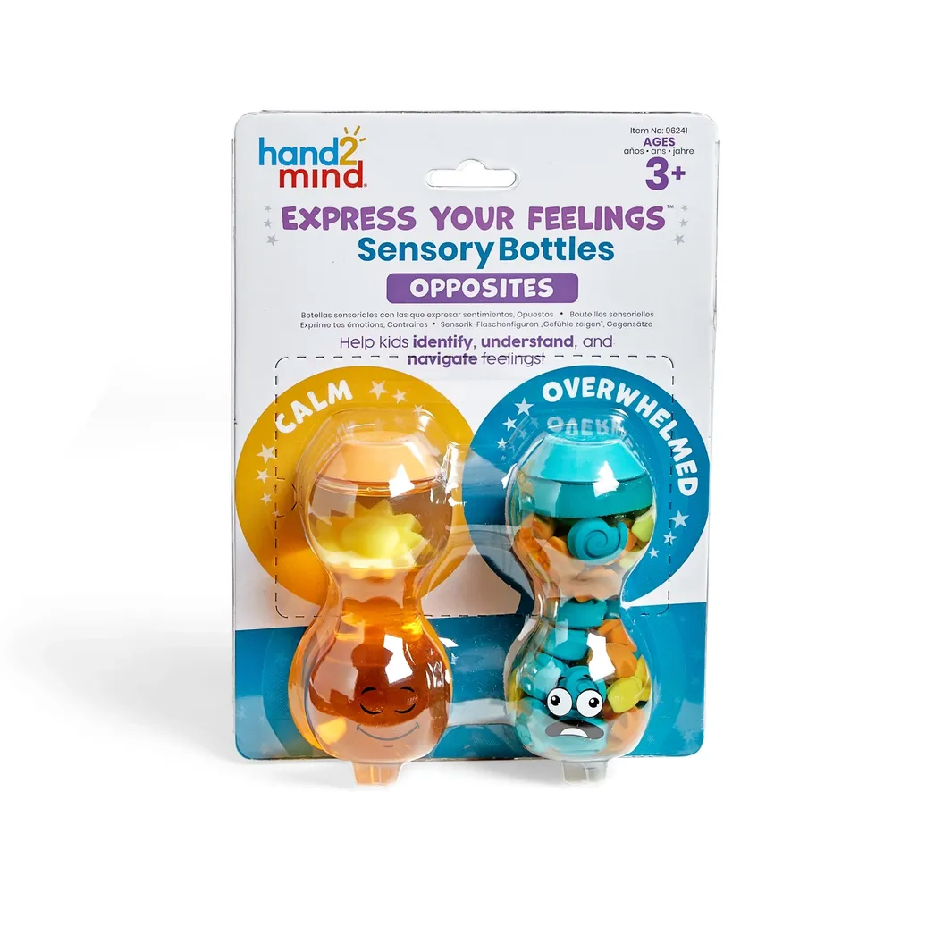 Hand 2 mind Express Your Feelings Sensory Bottles Opposites, calm and overwhlemed, ages 3+, help kids identify, understand and navigate feelings