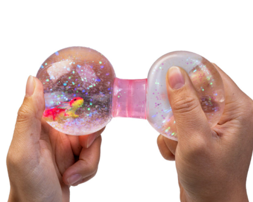 Lift your spirits with the squishy, squeezy Smoosho's Axolotl Dumbbell. With sparkly glitter and an adorable axolotl floating inside, each squeeze brings a rush of sensory fun!