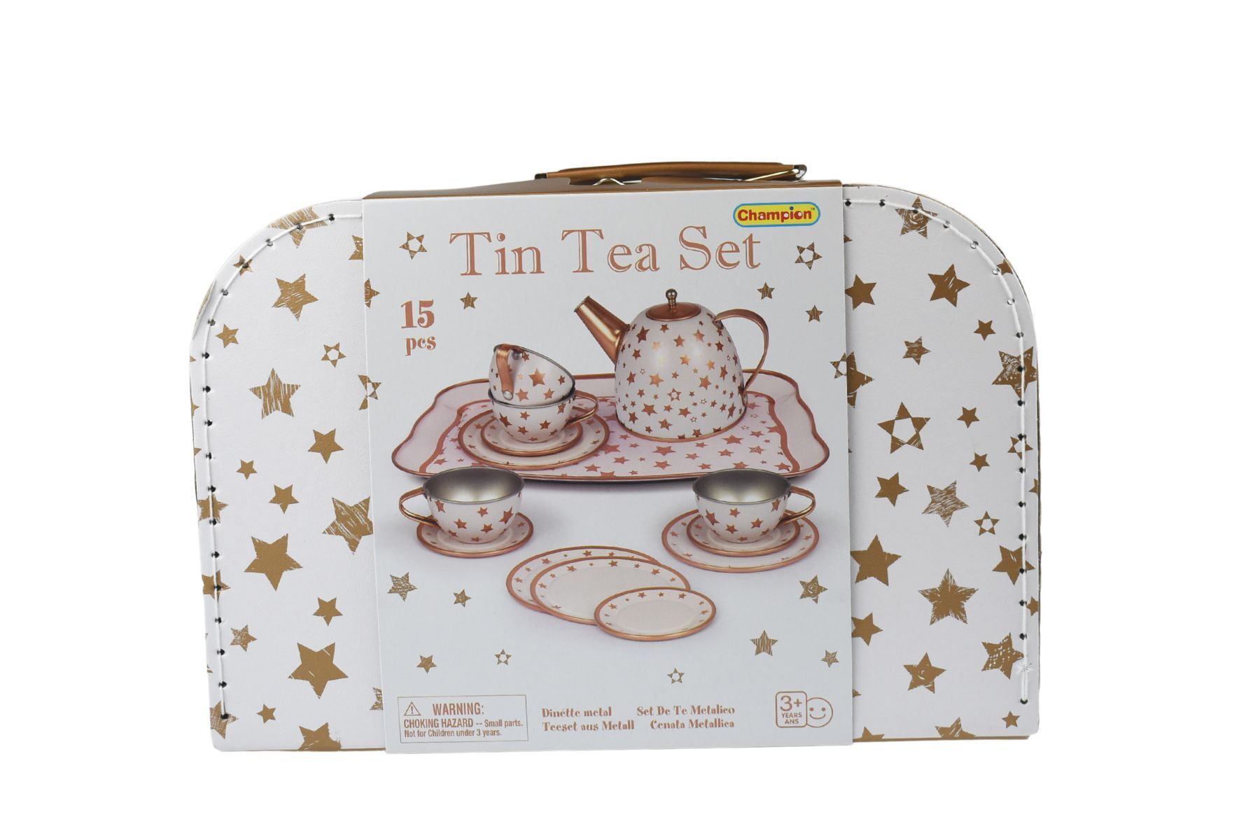 Champion Brand Gold star Tin Tea set in a suitcase, 15 pieces, ages 3+
