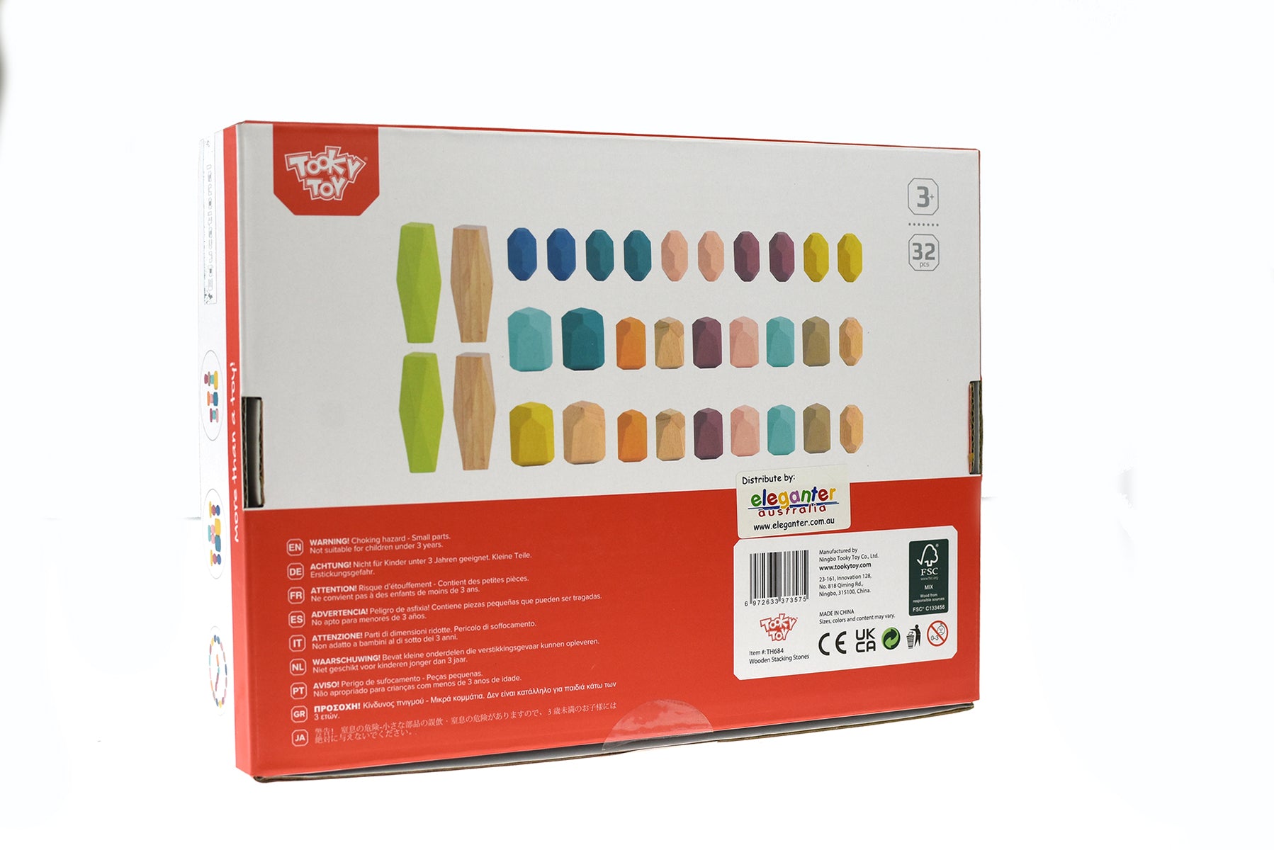 Tooky Toy 32 pieces Wooden Stacking Stones. Ages 3+